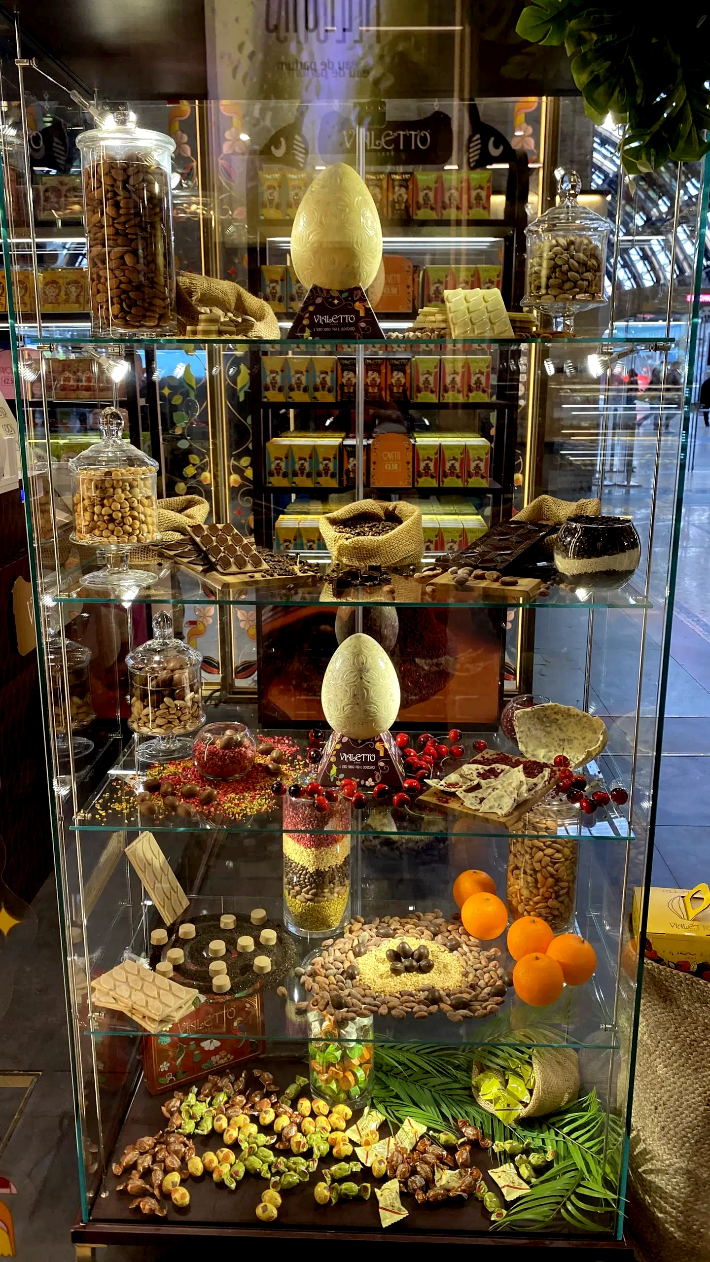 Materiali premium, palette e soluzioni grafiche pienamente coerenti con l’identità Vialetto hanno dato forma a uno spazio immersivo e immediatamente riconoscibile. All’interno, una selezione ampia e golosa — uova di Pasqua, ovetti, praline, tavolette — ha trasformato la sosta in un’esperienza extra-sensoriale.